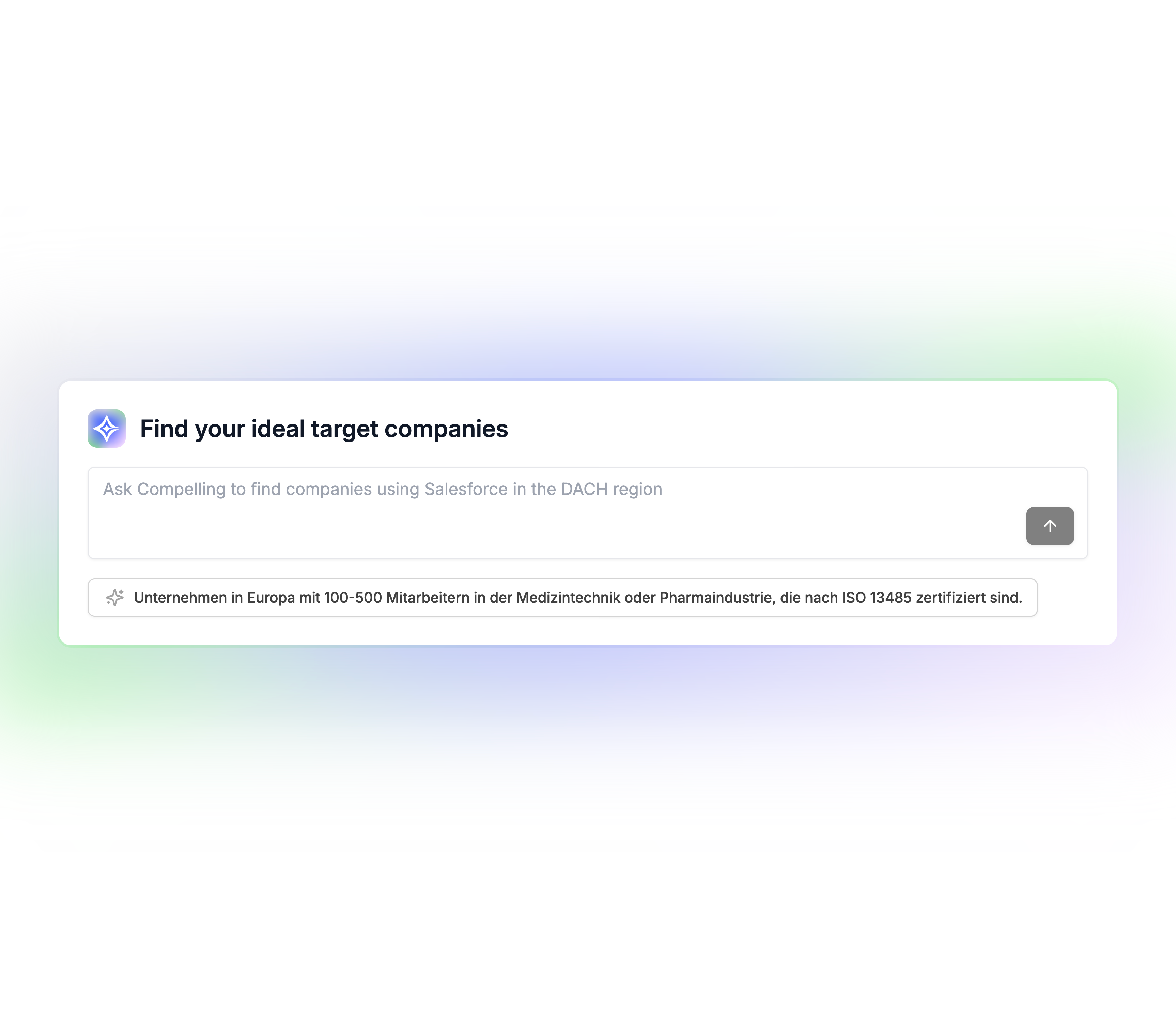 Compelling takes your prompt, interprets intent, cross-references it against real company data, and returns a targeted list of accounts that actually match.